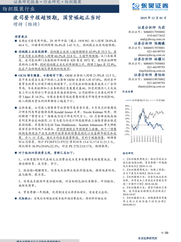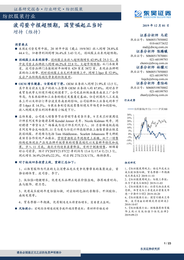 【东吴证券】【20191201】纺织服装行业:波司登中报超预期,国货崛起正当时-23页