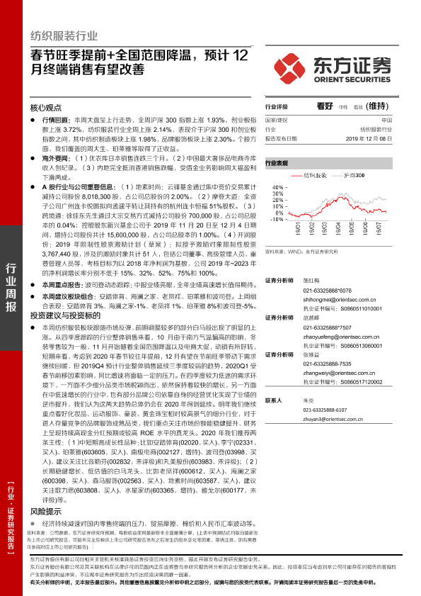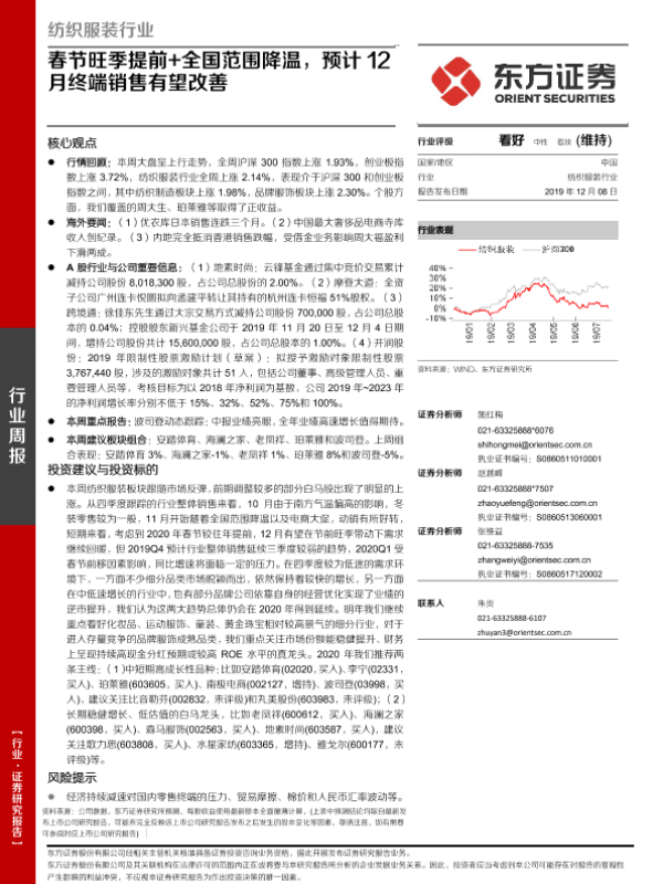 【东方证券】【20191208】纺织服装行业周报:春节旺季提前+全国范围降温,预计12月终端销售有望改善-11页