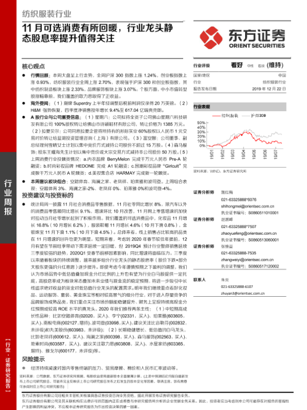 【东方证券】【20191222】纺织服装行业:11月可选消费有所回暖,行业龙头静态股息率提升值得关注-11页