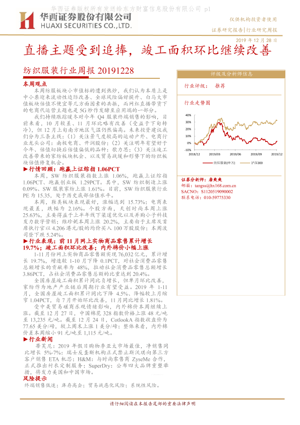 【华西证券】【20191228】纺织服装行业周报:直播主题受到追捧,竣工面积环比继续改善-17页