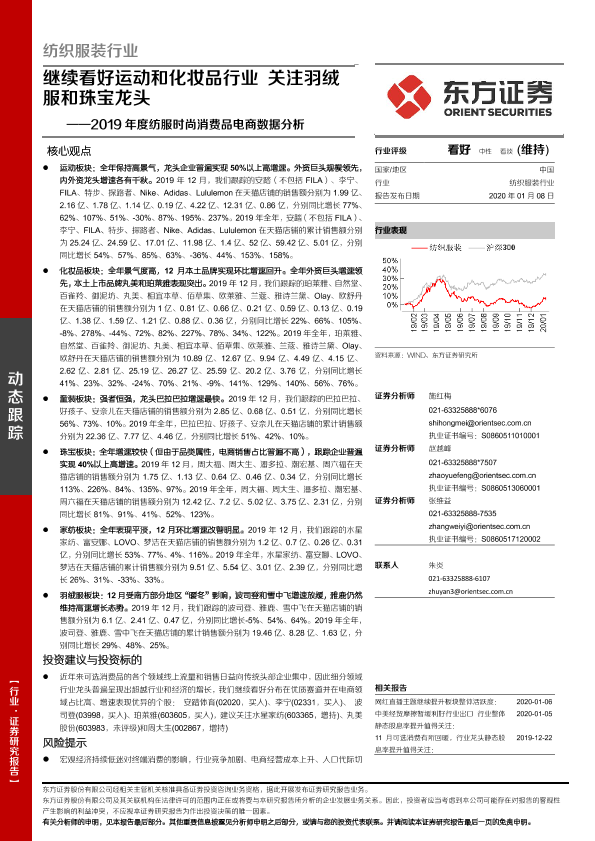 【东方证券】【20200108】2019年度纺服时尚消费品电商数据分析:继续看好运动和化妆品行业关注羽绒服和珠宝龙头-15页