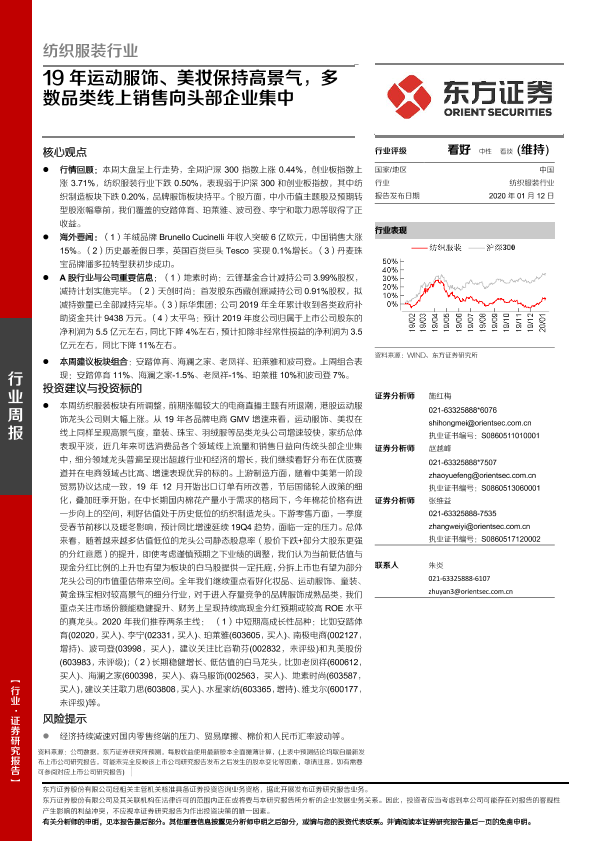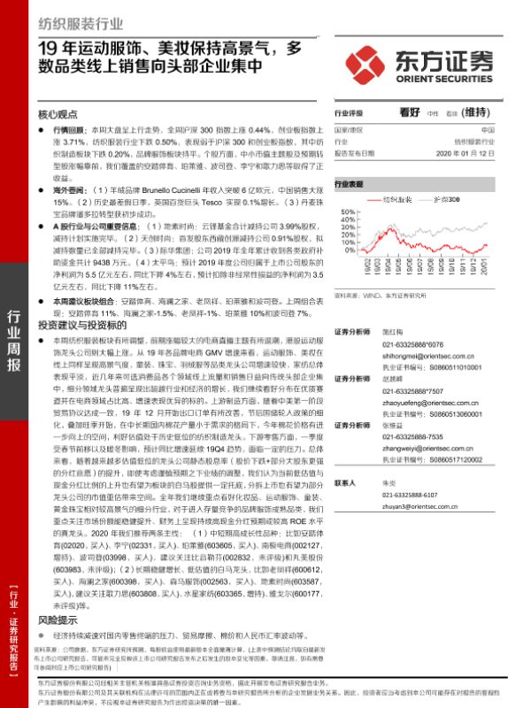 【东方证券】【20200112】20200112-东方证券-纺织服装行业周报:19年运动服饰、美妆保持高景气,多数品类线上销售向头部企业集中-11页