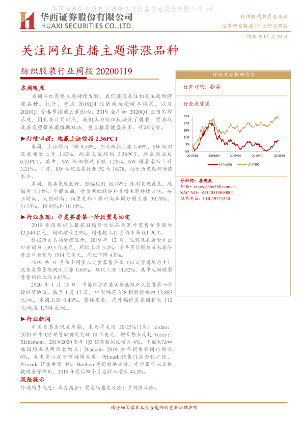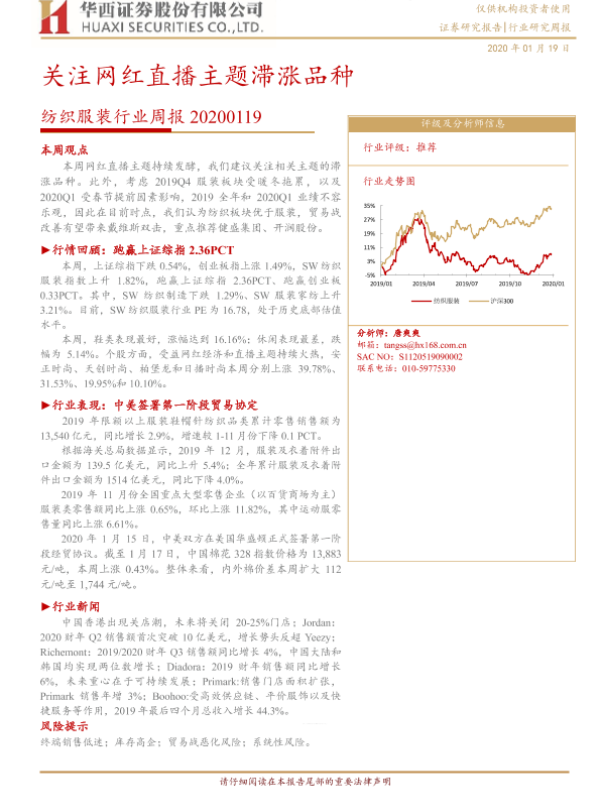 【华西证券】【20200119】纺织服装行业周报:关注网红直播主题滞涨品种-15页