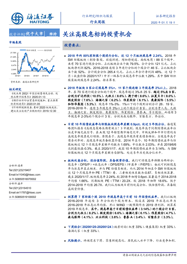 【海通证券】【20200119】纺织与服装行业周报:关注高股息标的投资机会-7页