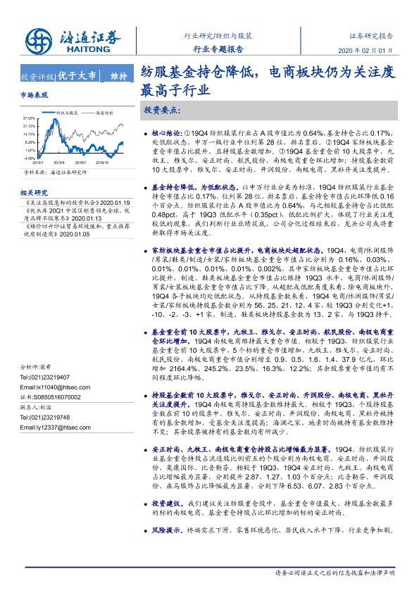 【海通证券】【20200201】20200201-海通证券-纺织与服装行业专题报告:纺服基金持仓降低,电商板块仍为关注度最高子行业-18页