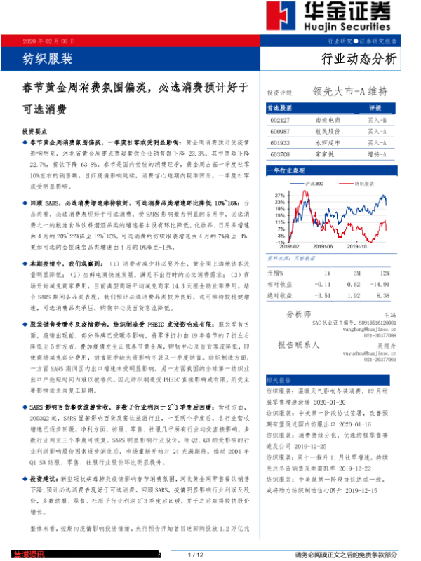 【华金证券】【20200203】20200203-华金证券-纺织服装行业动态分析:春节黄金周消费氛围偏淡,必选消费预计好于可选消费-12页