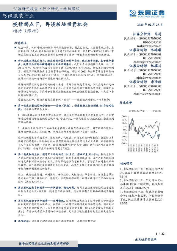 【东吴证券】【20200223】20200223-东吴证券-纺织服装行业:疫情拐点下,再谈板块投资机会-22页