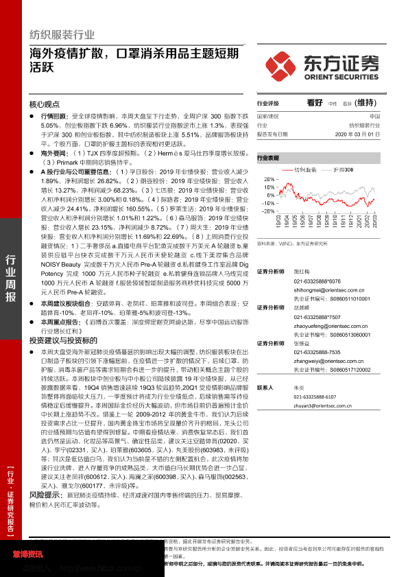 【东方证券】【20200301】20200301-东方证券-纺织服装行业周报:海外疫情扩散,口罩消杀用品主题短期活跃-12页