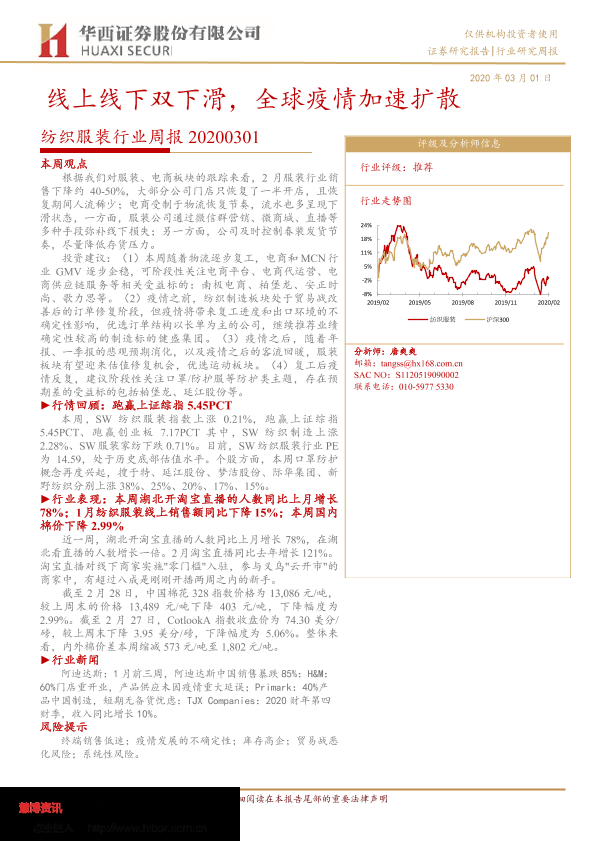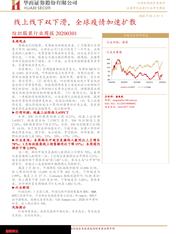 【华西证券】【20200301】20200301-华西证券-纺织服装行业周报:线上线下双下滑,全球疫情加速扩散-15页
