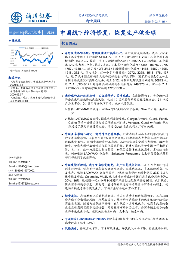 【海通证券】【20200315】20200315-海通证券-纺织与服装行业周报:中国线下终将修复,恢复生产供全球-7页