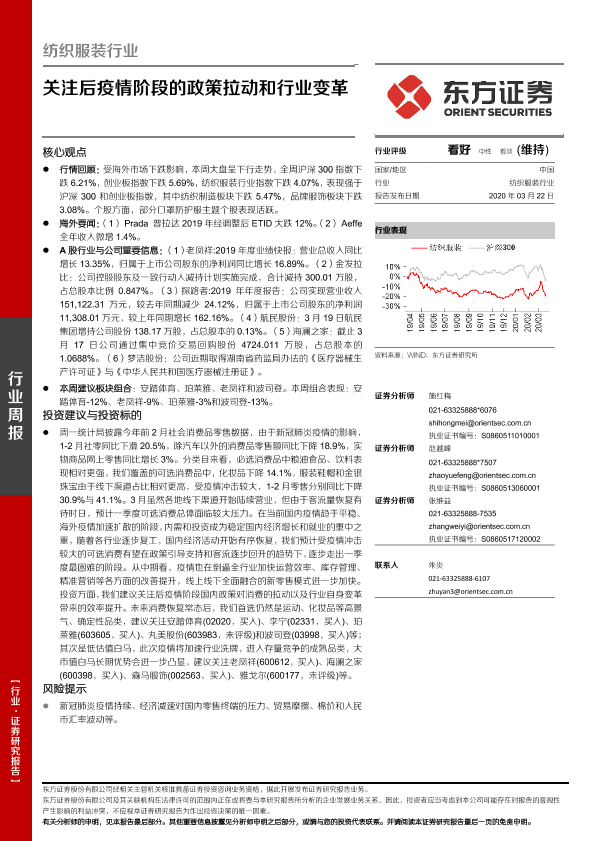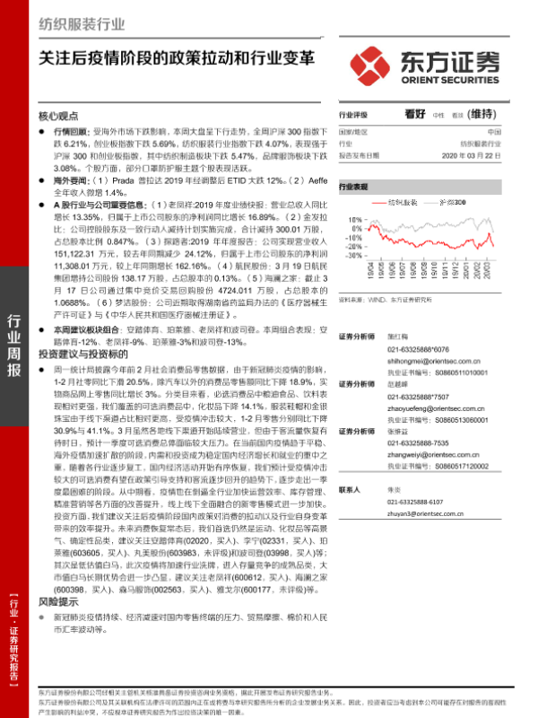 【东方证券】【20200322】纺织服装行业周报:关注后疫情阶段的政策拉动和行业变革-11页