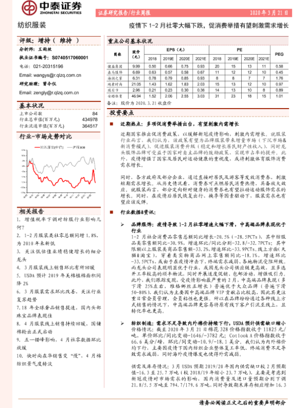 【中泰证券】【20200321】20200321-中泰证券-纺织服装行业周报:疫情下1-2月社零大幅下跌,促消费举措有望刺激需求增长-18页
