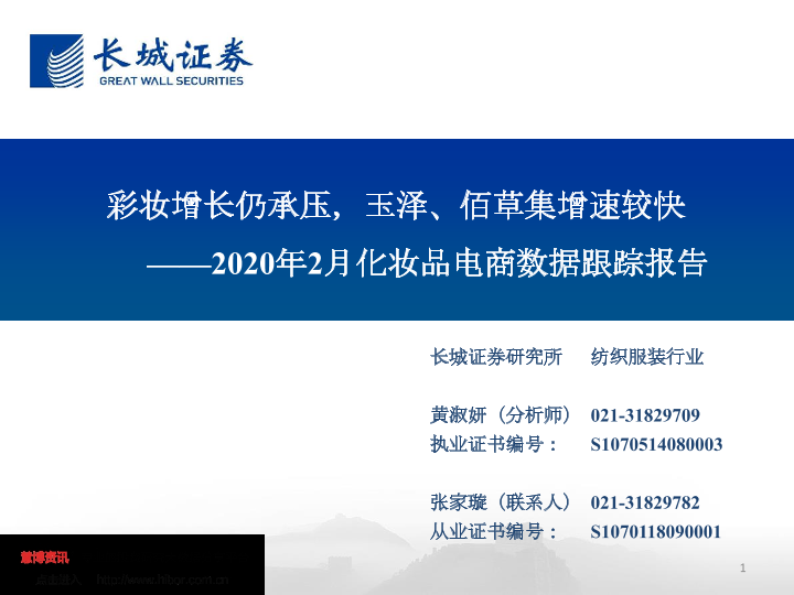 【长城证券】【20200323】2020年2月化妆品电商数据跟踪报告:彩妆增长仍承压,玉泽、佰草集增速较快-25页
