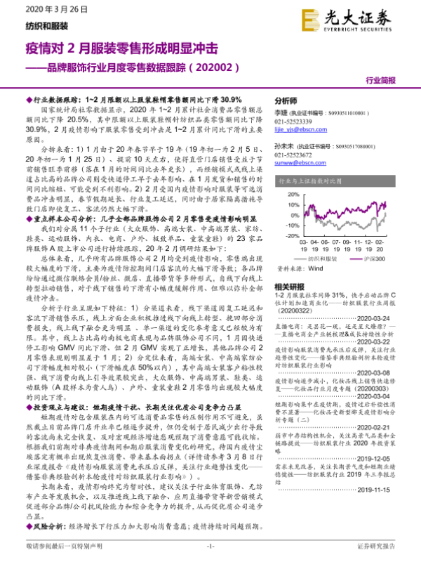 【光大证券】【20200326】品牌服饰行业月度零售数据跟踪:疫情对2月服装零售形成明显冲击-3页