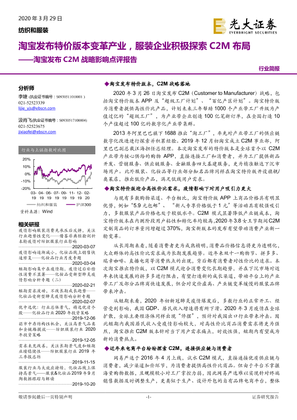 【光大证券】【20200329】淘宝发布C2M战略影响点评报告:淘宝发布特价版本变革产业,服装企业积极探索C2M布局-4页