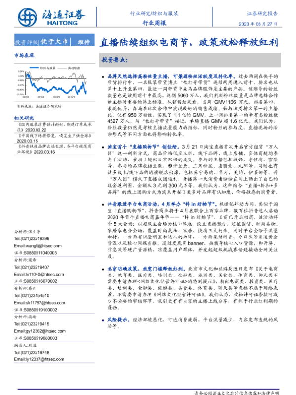 【海通证券】【20200327】纺织与服装行业周报:直播陆续组织电商节,政策放松释放红利-12页