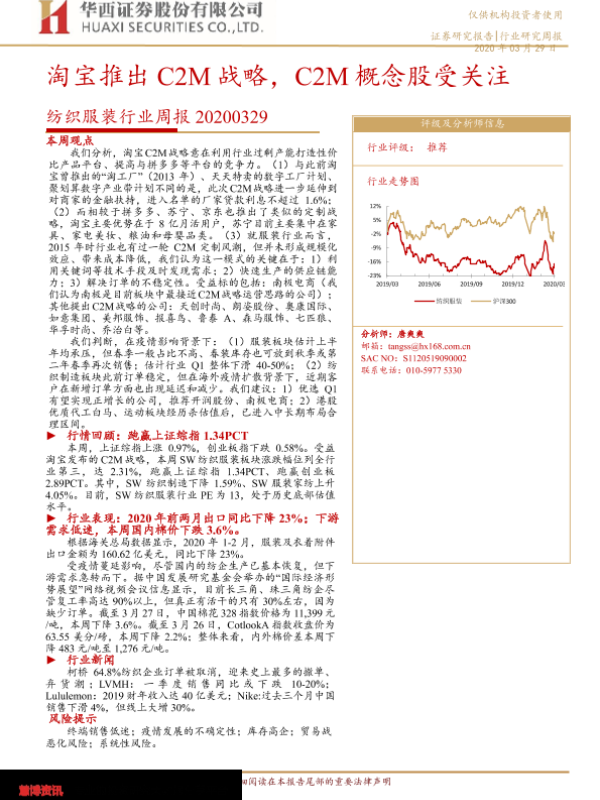 【华西证券】【20200329】20200329-华西证券-纺织服装行业周报:淘宝推出C2M战略,C2M概念股受关注-17页