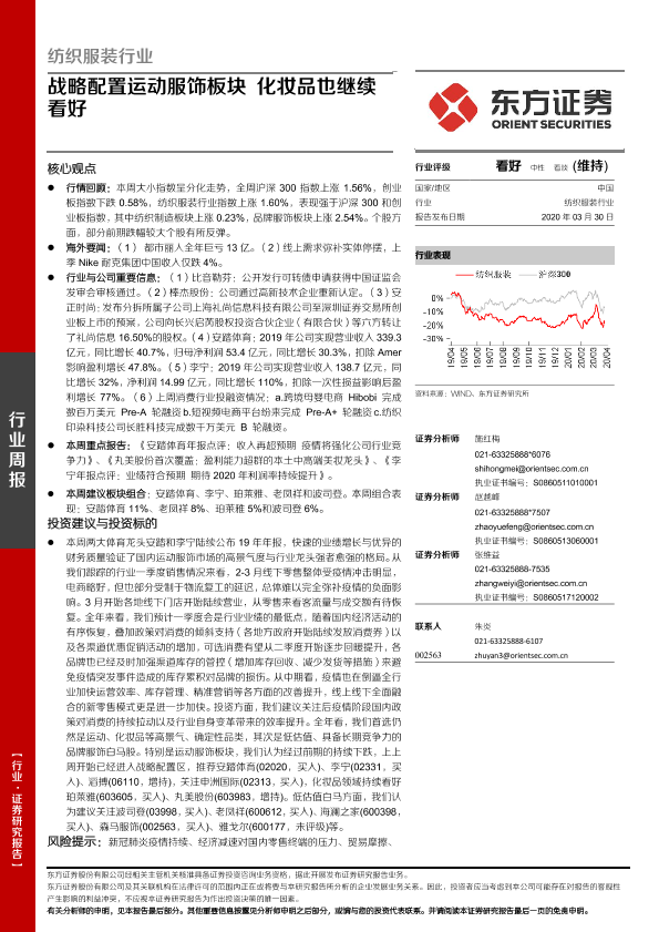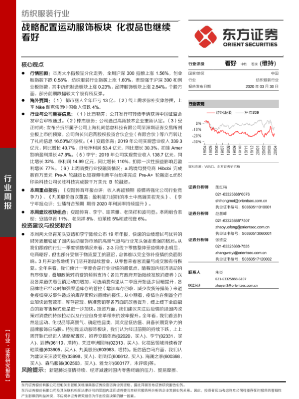 【东方证券】【20200330】20200330-东方证券-纺织服装行业周报:战略配置运动服饰板块化妆品也继续看好-13页