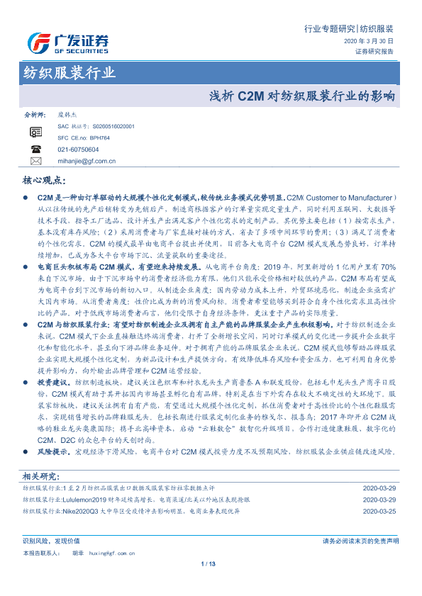 【广发证券】【20200330】浅析C2M对纺织服装行业的影响-13页