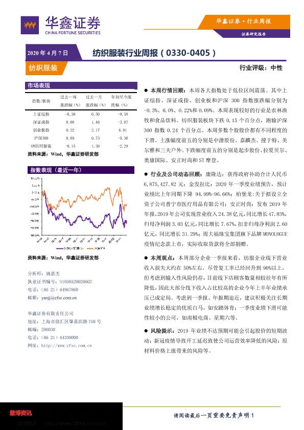 【华鑫证券】【20200407】20200407-华鑫证券-纺织服装行业周报-10页
