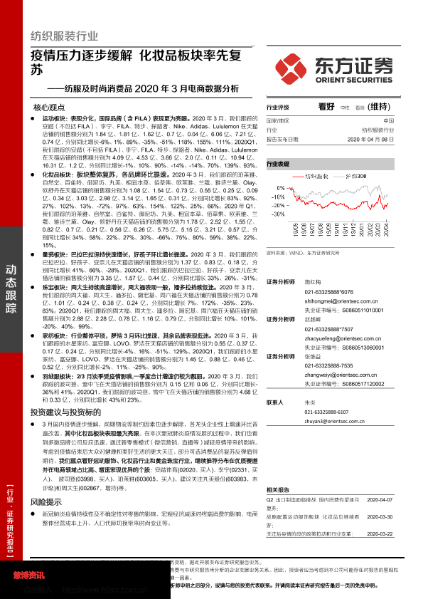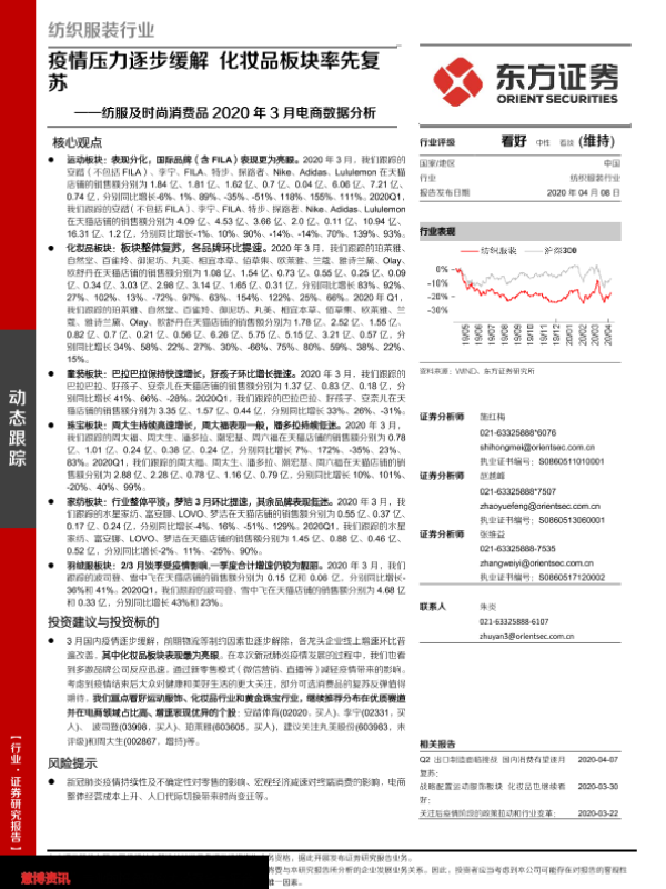 【东方证券】【20200408】纺服及时尚消费品2020年3月电商数据分析:疫情压力逐步缓解 化妆品板块率先复苏-15页