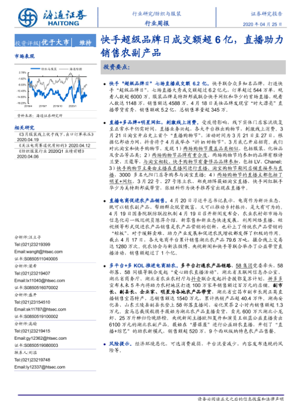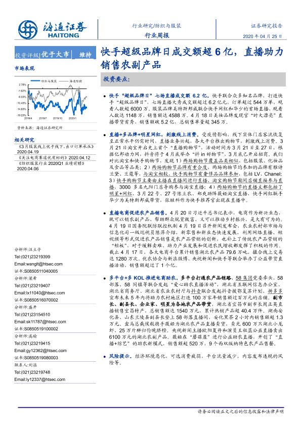 【海通证券】【20200425】20200425-海通证券-纺织与服装行业周报:快手超级品牌日成交额超6亿,直播助力销售农副产品-11页