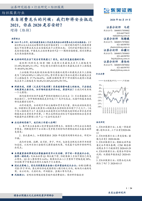 【东吴证券】【20200419】纺织服装行业:来自消费龙头的问候:我们即将安全抵达2021,你在2020是否安好?-24页