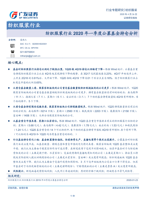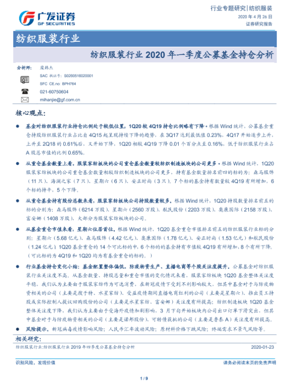 【广发证券】【20200426】纺织服装行业2020年一季度公募基金持仓分析-9页