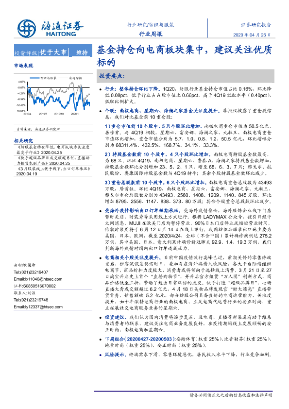 【海通证券】【20200426】20200426-海通证券-纺织与服装行业周报:基金持仓向电商板块集中,建议关注优质标的-8页