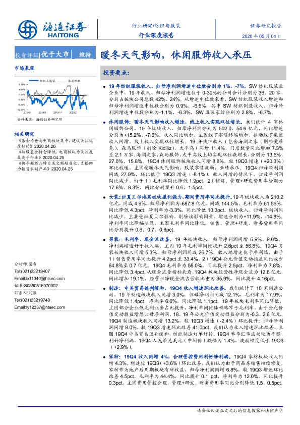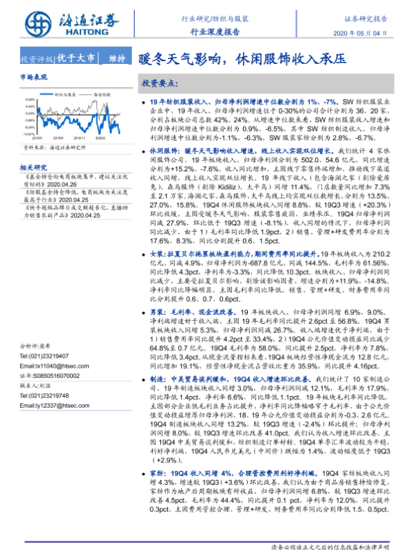 【海通证券】【20200504】纺织与服装行业深度报告:暖冬天气影响,休闲服饰收入承压-25页