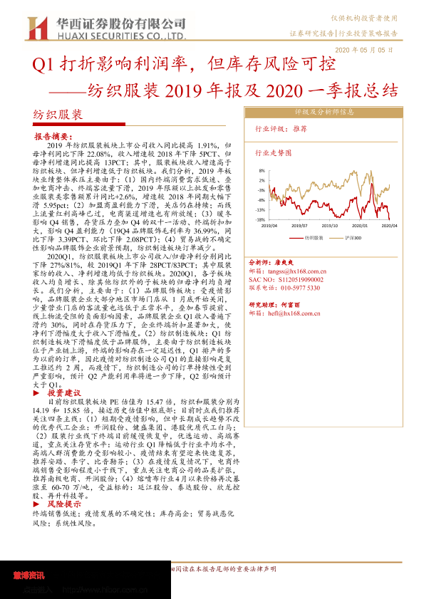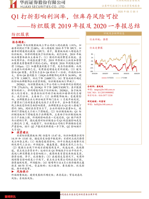 【华西证券】【20200505】Q1打折影响利润率,但库存风险可控 ——纺织服装 2019年报及 2020一季报总结-38页