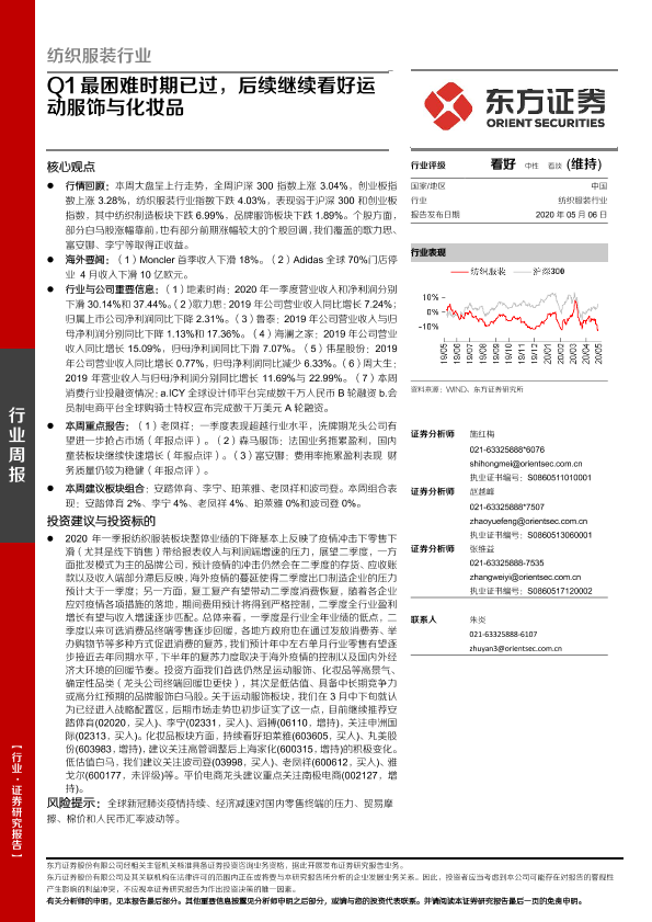 【东方证券】【20200506】20200506-东方证券-纺织服装行业周报:Q1最困难时期已过,后续继续看好运动服饰与化妆品-13页