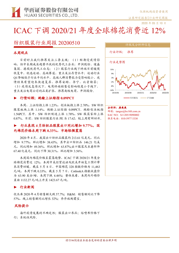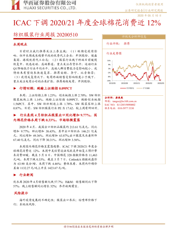 【华西证券】【20200510】20200510-华西证券-纺织服装行业周报:ICAC下调2020 21年度全球棉花消费近12%-16页