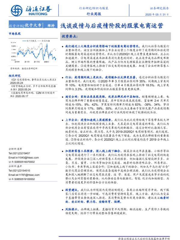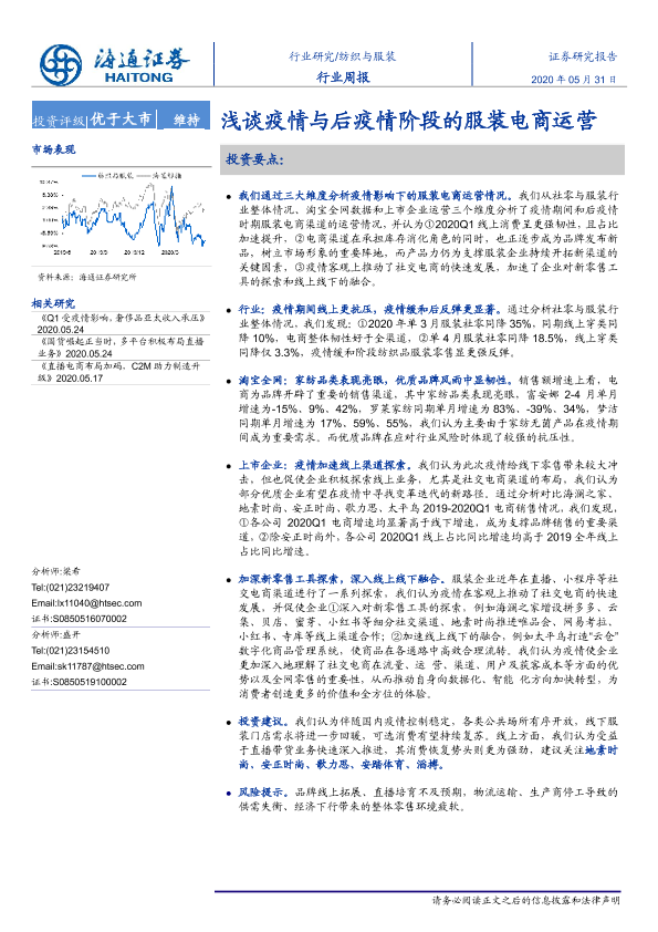 【海通证券】【20200531】20200531-海通证券-纺织与服装行业周报:浅谈疫情与后疫情阶段的服装电商运营-7页