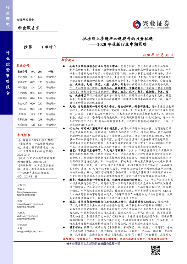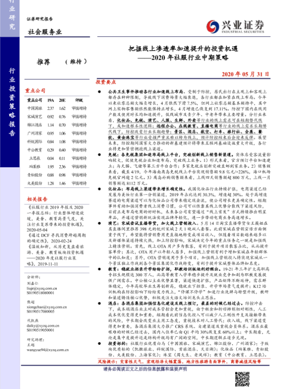 【兴业证券】【20200531】2020年社服行业中期策略:把握线上渗透率加速提升的投资机遇-47页