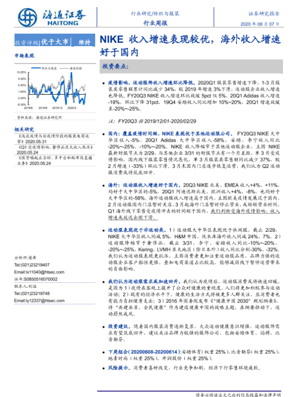 【海通证券】【20200607】20200607-海通证券-纺织与服装行业周报:NIKE收入增速表现较优,海外收入增速好于国内-7页