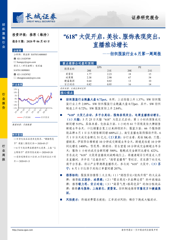 618大促 投资评级 电商直播 纺织服装 行业表现