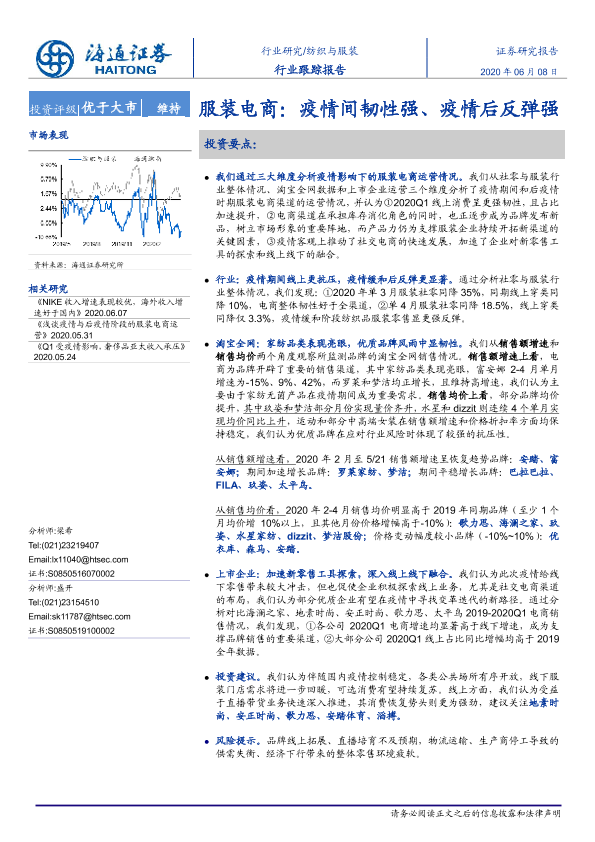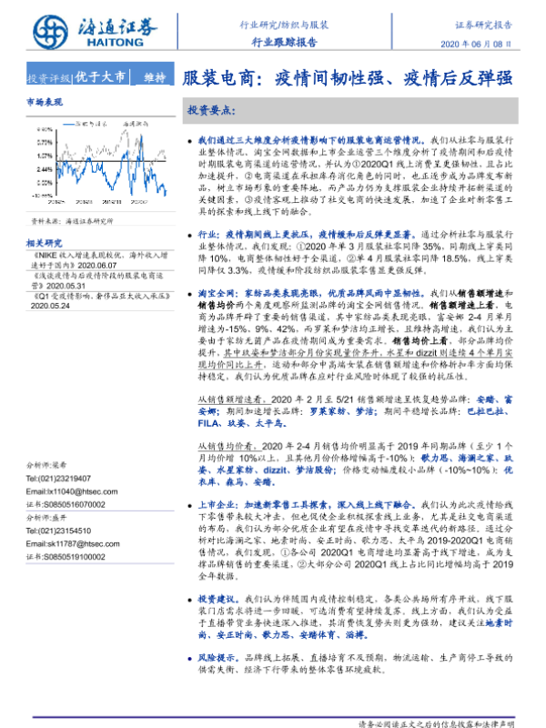 【海通证券】【20200608】20200608-海通证券-纺织与服装行业跟踪报告:服装电商:疫情间韧性强、疫情后反弹强-9页