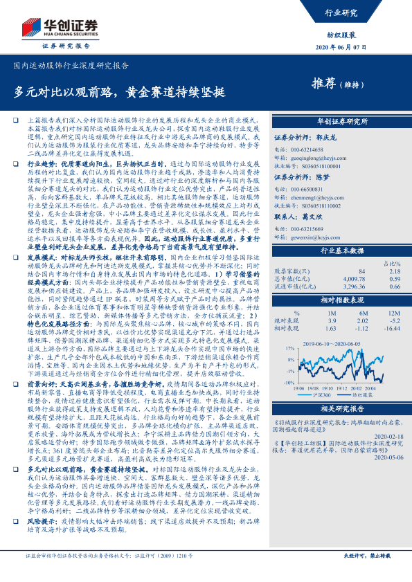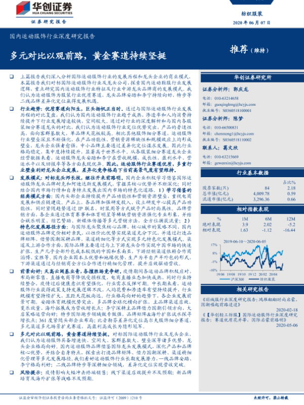 【华创证券】【20200607】国内运动服饰行业深度研究报告:多元对比以观前路,黄金赛道持续坚挺-37页