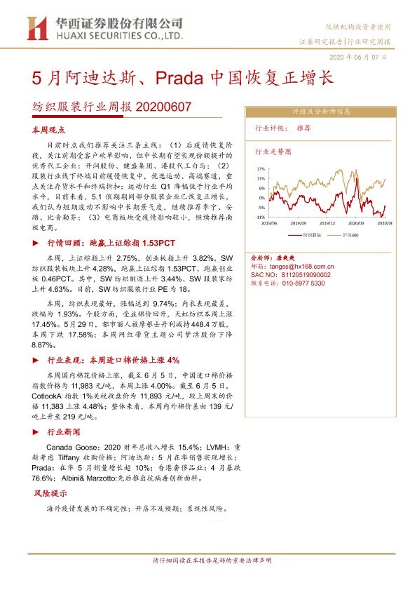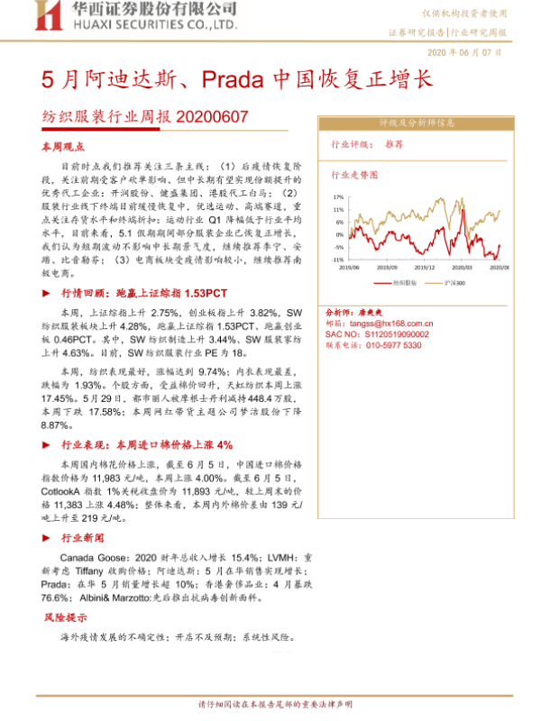 【华西证券】【20200607】20200607-华西证券-纺织服装行业周报:5月阿迪达斯、Prada中国恢复正增长-16页