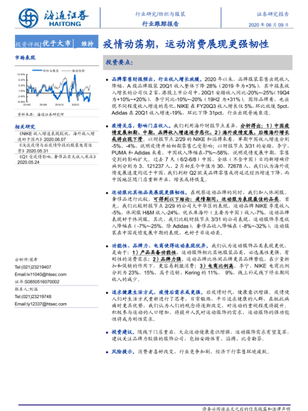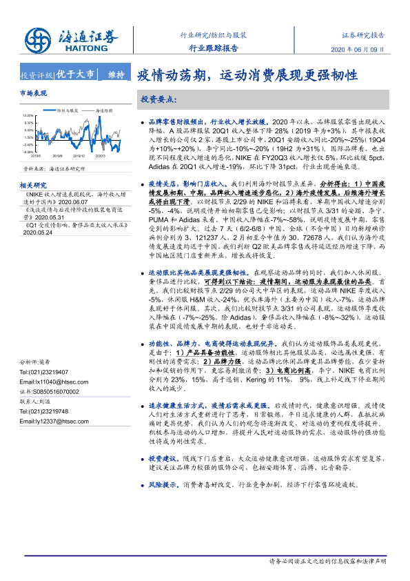 【海通证券】【20200609】20200609-海通证券-纺织与服装行业跟踪报告:疫情动荡期,运动消费展现更强韧性-10页