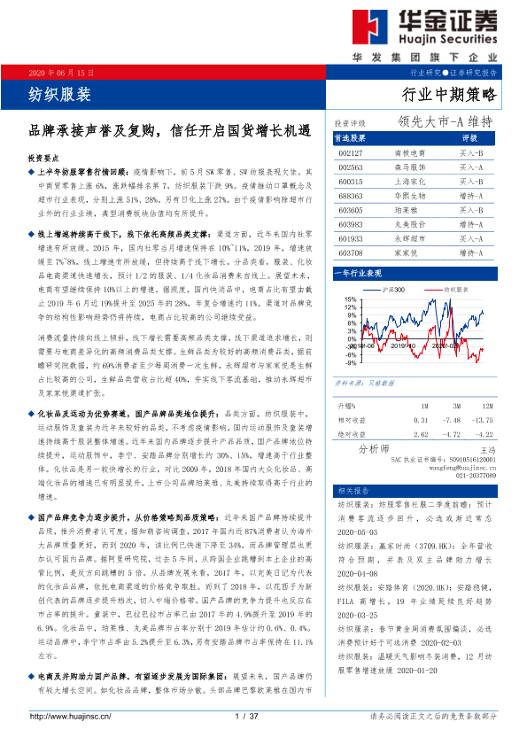 【华金证券】【20200615】20200615-华金证券-纺织服装行业中期策略:品牌承接声誉及复购,信任开启国货增长机遇-37页