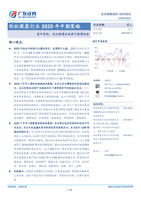 【广发证券】【20200611】纺织服装行业2020年中期策略:危中有机,关注疫情后的若干投资机会-44页