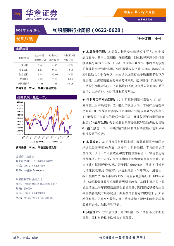 【华鑫证券】【20200629】20200629-华鑫证券-纺织服装行业周报-12页