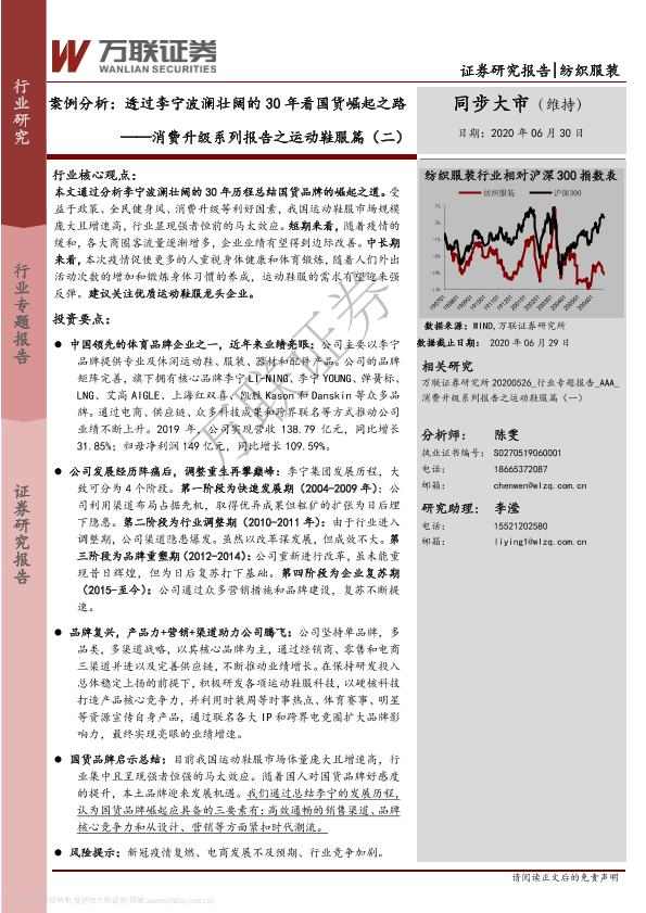 【万联证券】【20200630】消费升级系列报告之运动鞋服篇(二):案例分析:透过李宁波澜壮阔的30年看国货崛起之路-27页