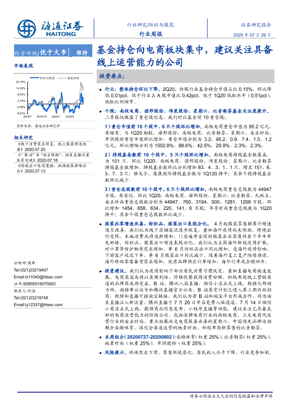 【海通证券】【20200729】20200729-海通证券-纺织与服装行业周报:基金持仓向电商板块集中,建议关注具备线上运营能力的公司-9页