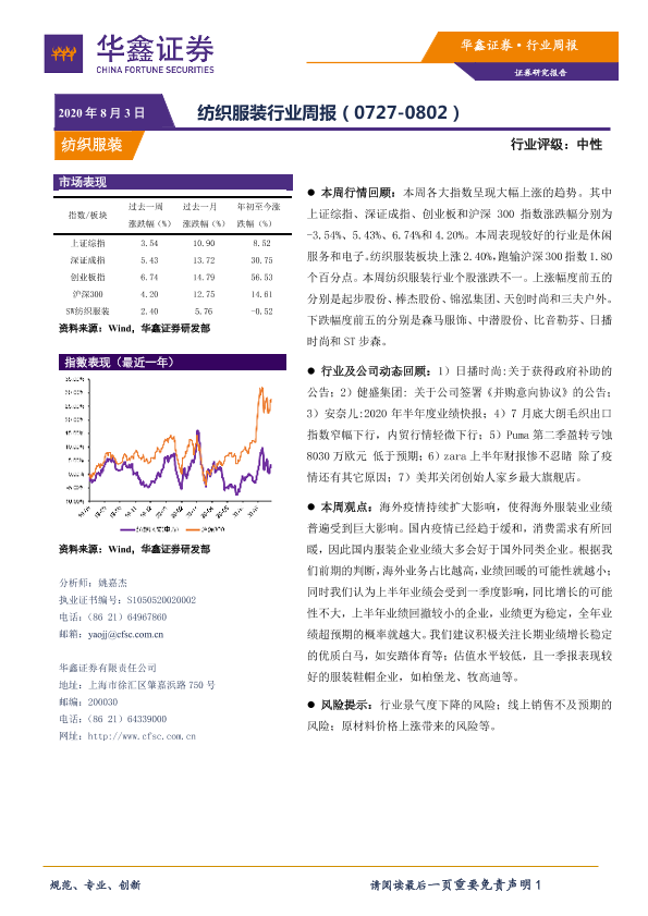 【华鑫证券】【20200803】20200803-华鑫证券-纺织服装行业周报-12页