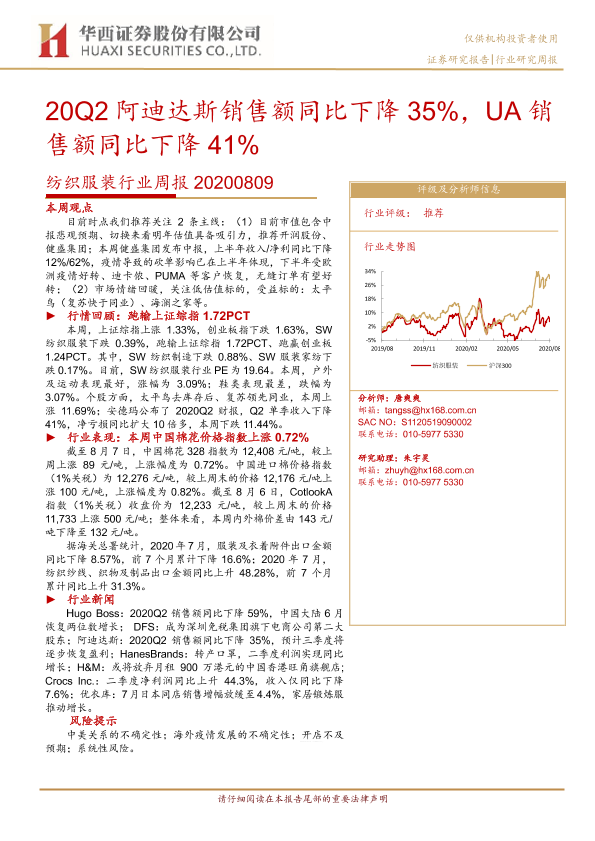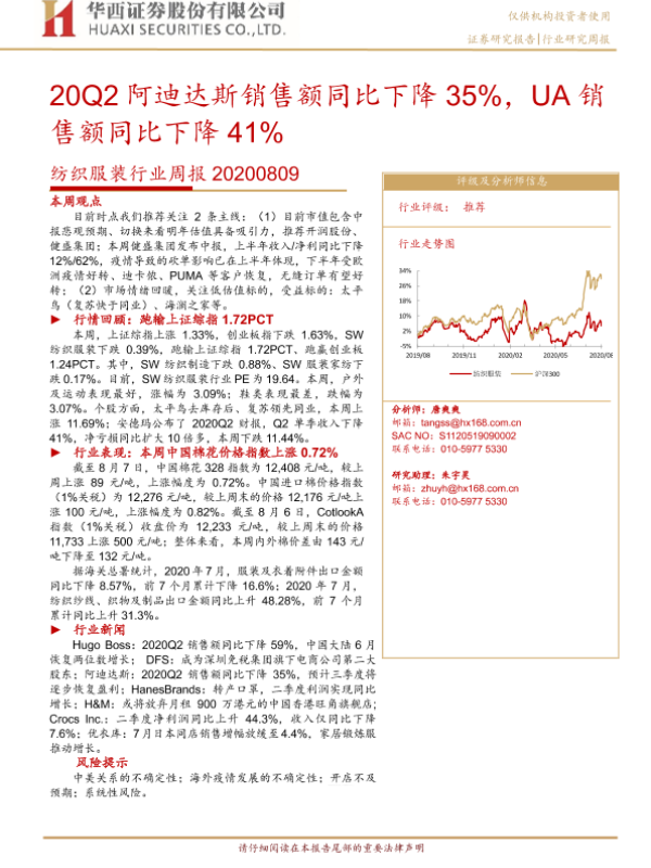 【华西证券】【20200809】20200809-华西证券-纺织服装行业周报:20Q2阿迪达斯销售额同比下降35%,UA销售额同比下降41%-21页