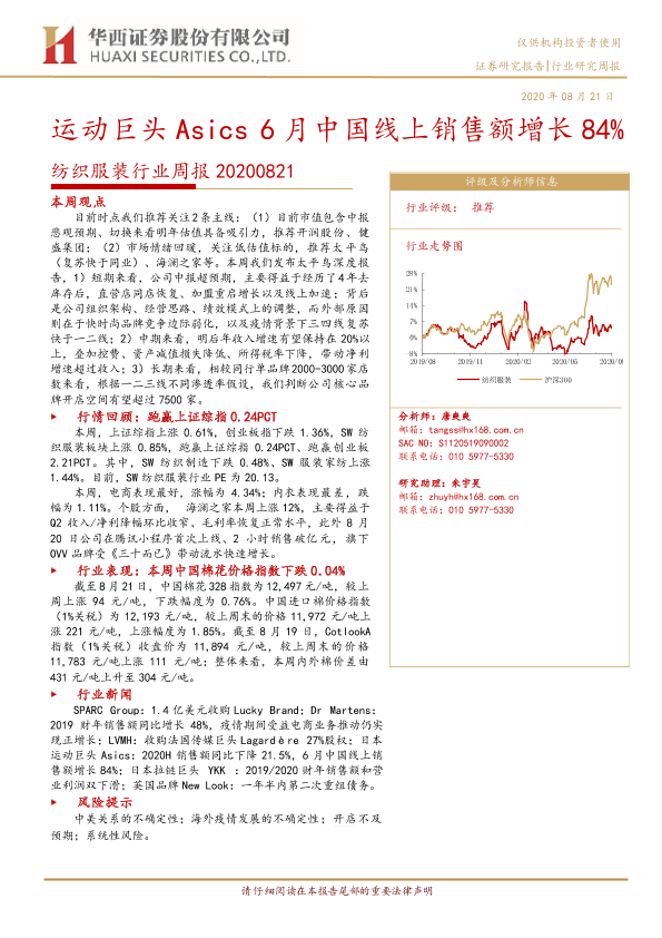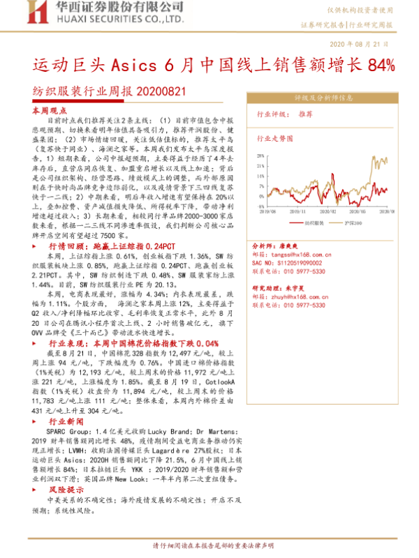 【华西证券】【20200821】20200821-华西证券-纺织服装行业周报:运动巨头Asics6月中国线上销售额增长84%-17页