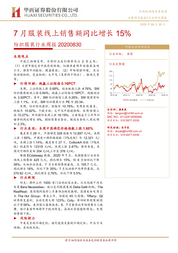 【华西证券】【20200830】20200830-华西证券-纺织服装行业周报:7月服装线上销售额同比增长15%-19页